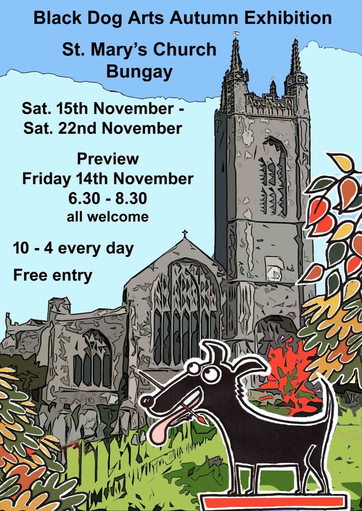 Black Dog Arts is a successful group of artists – across many media – and this is their Autumn exhibition at St. Mary’s Church. The work will also be for sale, presenting a wonderful opportunity to own an original piece of art at an affordable price.