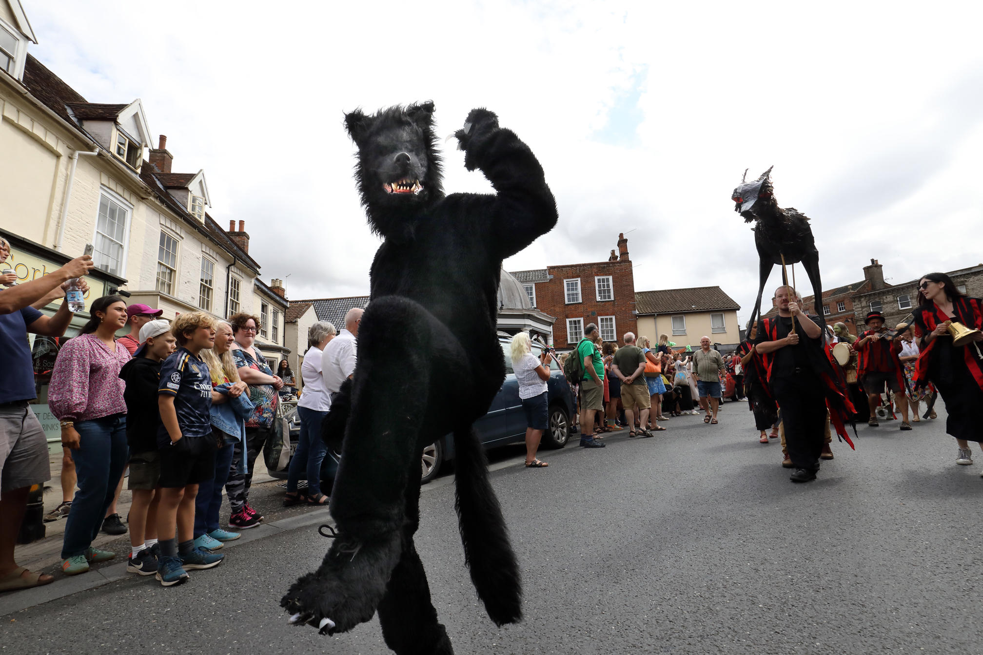 Black Shuck Festival is back for another year! Lots of things planned for 2025 across all of Bungay – in the Fisher Theatre, in St. Mary’s Church, in the Three Tuns, and big free events on Falcon Meadow on Saturday 2nd and Sunday 3rd. The Parade will go from the Butter Cross along Bridge Street to Falcon Meadow and will be bigger, louder and longer than ever!
